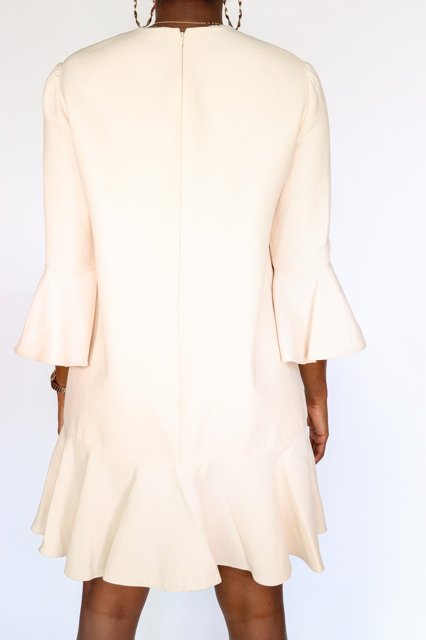 This simple and elegant dress by Valentino is made in Italy of 65% virgin wool, 35% silk and 100% silk for the inner lining. This piece is cozy yet not bulky. Little to no signs wear.