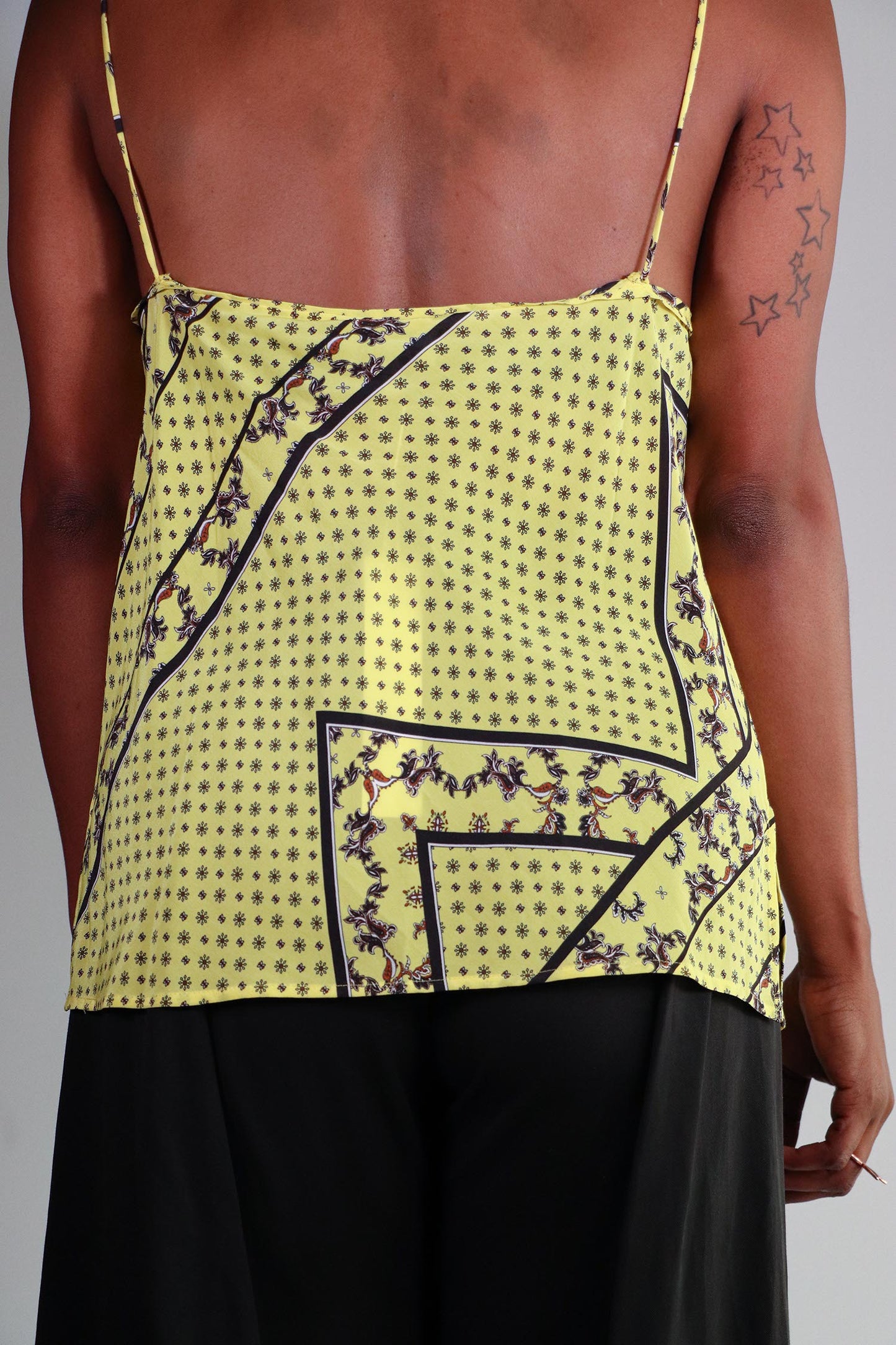 This beautiful 45% silk and 55% viscose camisole from GANNI has adjustable knotted straps and a flowy bodice. This item is brand new with tags and has little to no signs of wear.