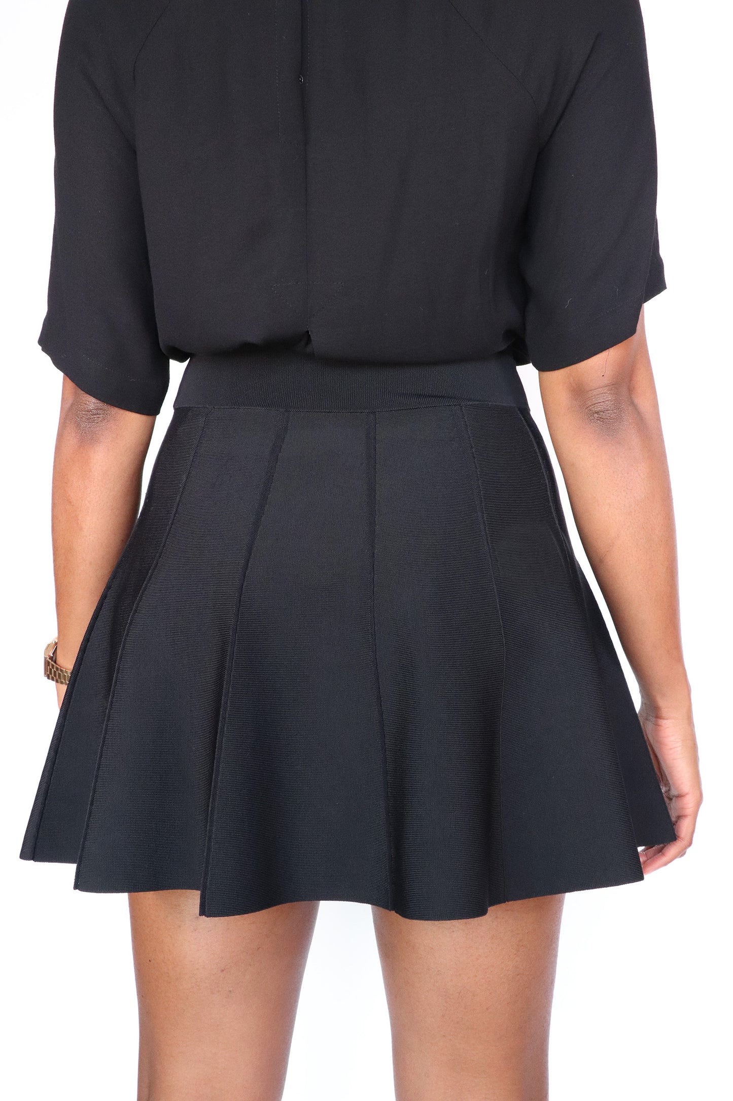 This cute mini skirt by A.L.C. is comfortable and stylish. With a stretch fabric and pleats, this skirt is perfect for any occasion. High Waisted with elastic waist band and a fun a-line shape, this skirt is made of 86% Rayon, 13% Nylon and 1% Spandex. This item is in good condition with little to no signs of wear.