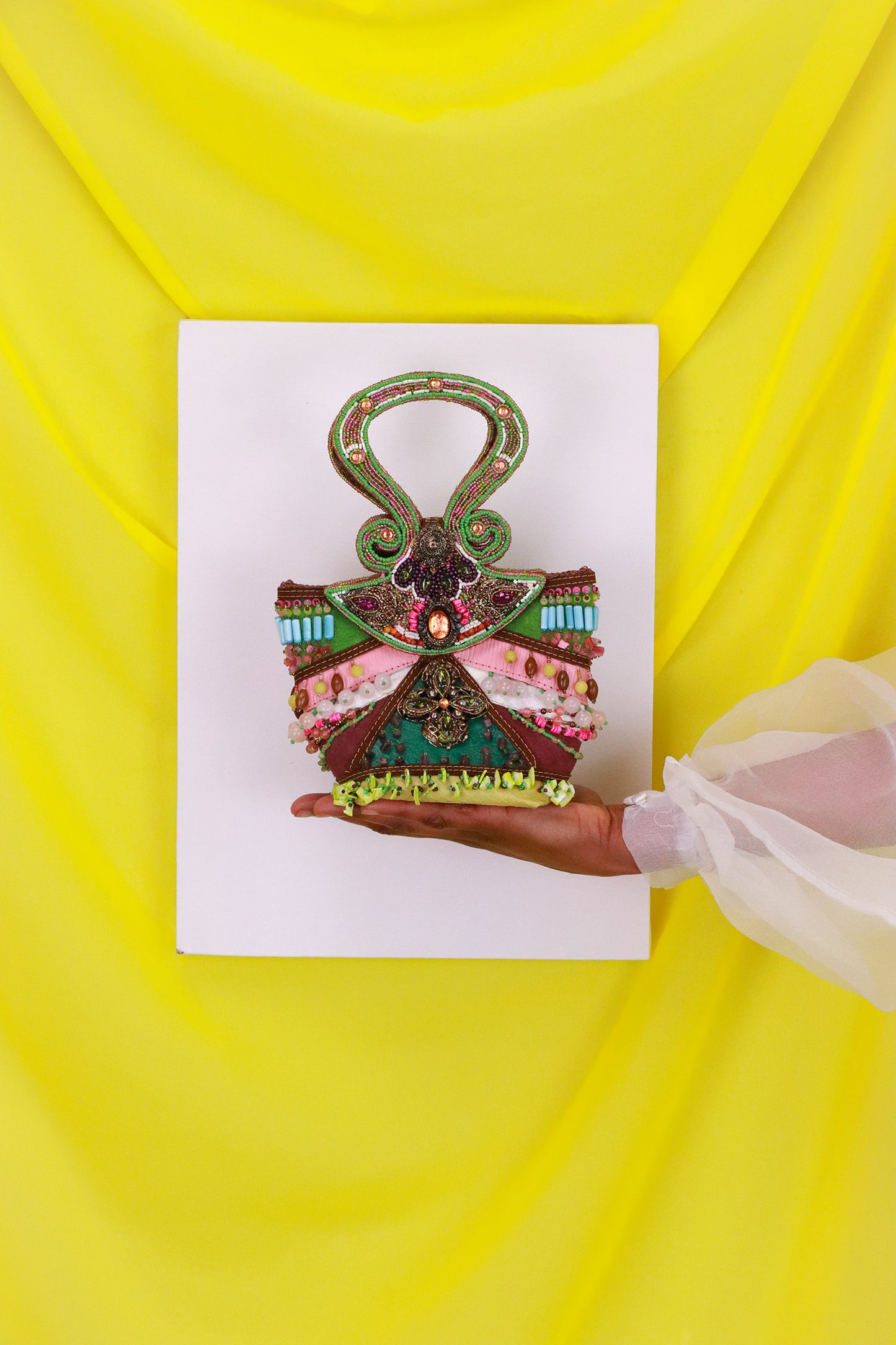 Designed with multi color glass beads, this exclusive piece from Mary Frances is one of a kind and adds value to any wardrobe. This bag is in excellent condition, with no missing beads or signs of wear.